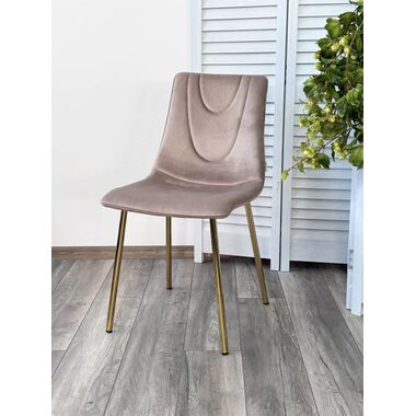 Сиденье обито велюром высокой плотности серии BLUVEL. Состав ткани: полиэстер - 100%. Плотность ткани 1м2: 320 г/м2. Ножки стула - металл золотого цвета. Подробное описаниеСтул ELLI BLUVEL-40 Бежевый, велюр / золотой каркас